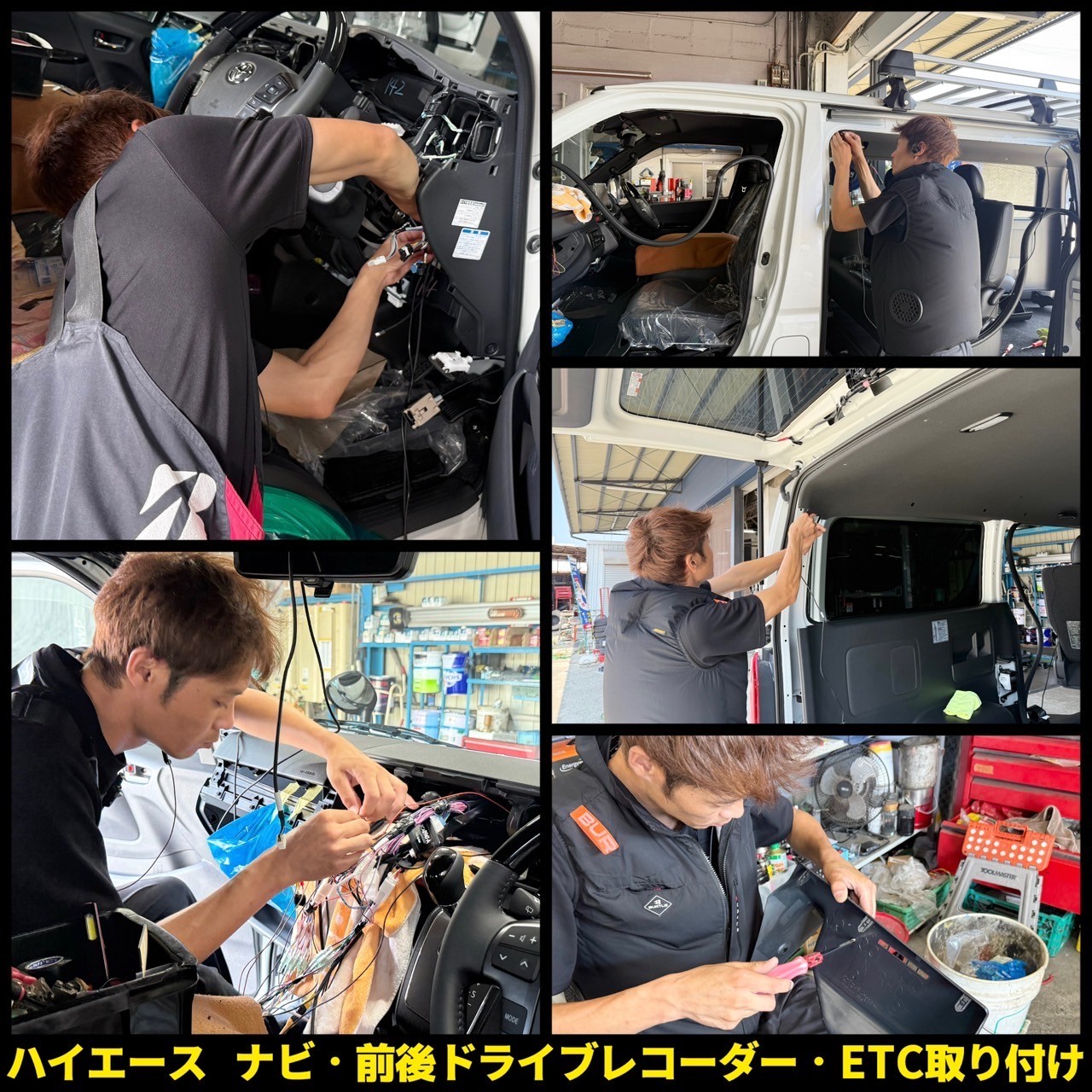 納車前の新車ハイエースに、パナソニックさんの【CN-F1X10C1D】10型フローティングナビとナビ連動前後ドライブレコーダー、ナビ連動ETC2.0を取り付けさせていただきました!(*^^)v