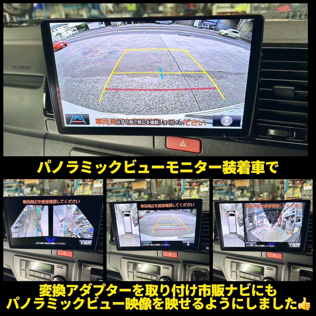 純正バックカメラ付き車(全方位パノラミックビュータイプ)でしたので、バックカメラ変換アダプタを使用してナビ側モニターに映るようにしました!(*^^)v