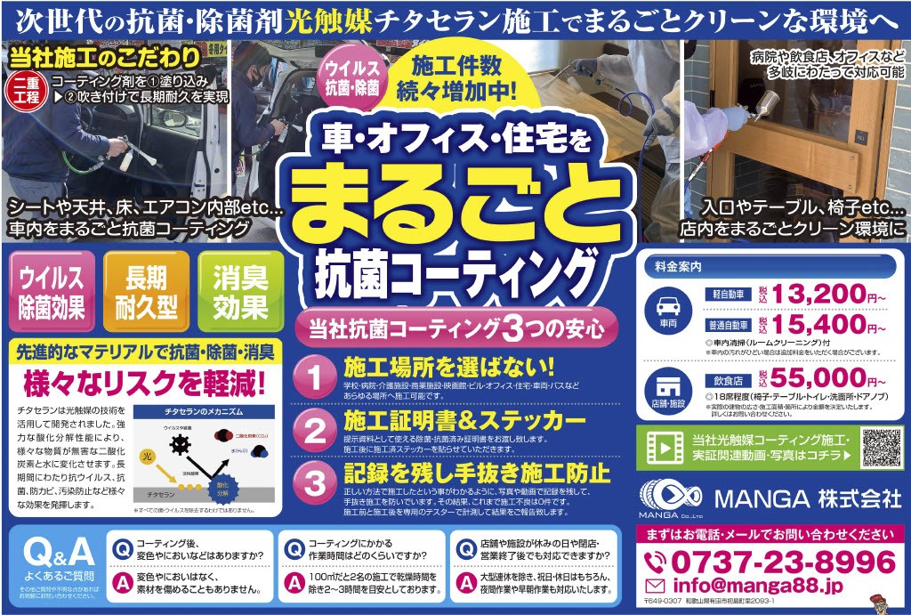 只今、施工件数続々増加中のウィルス除菌・抗菌コーティング【チタセランコーティング】 光の力でウィルスを分解・除去してくれる光触媒のコーティング剤