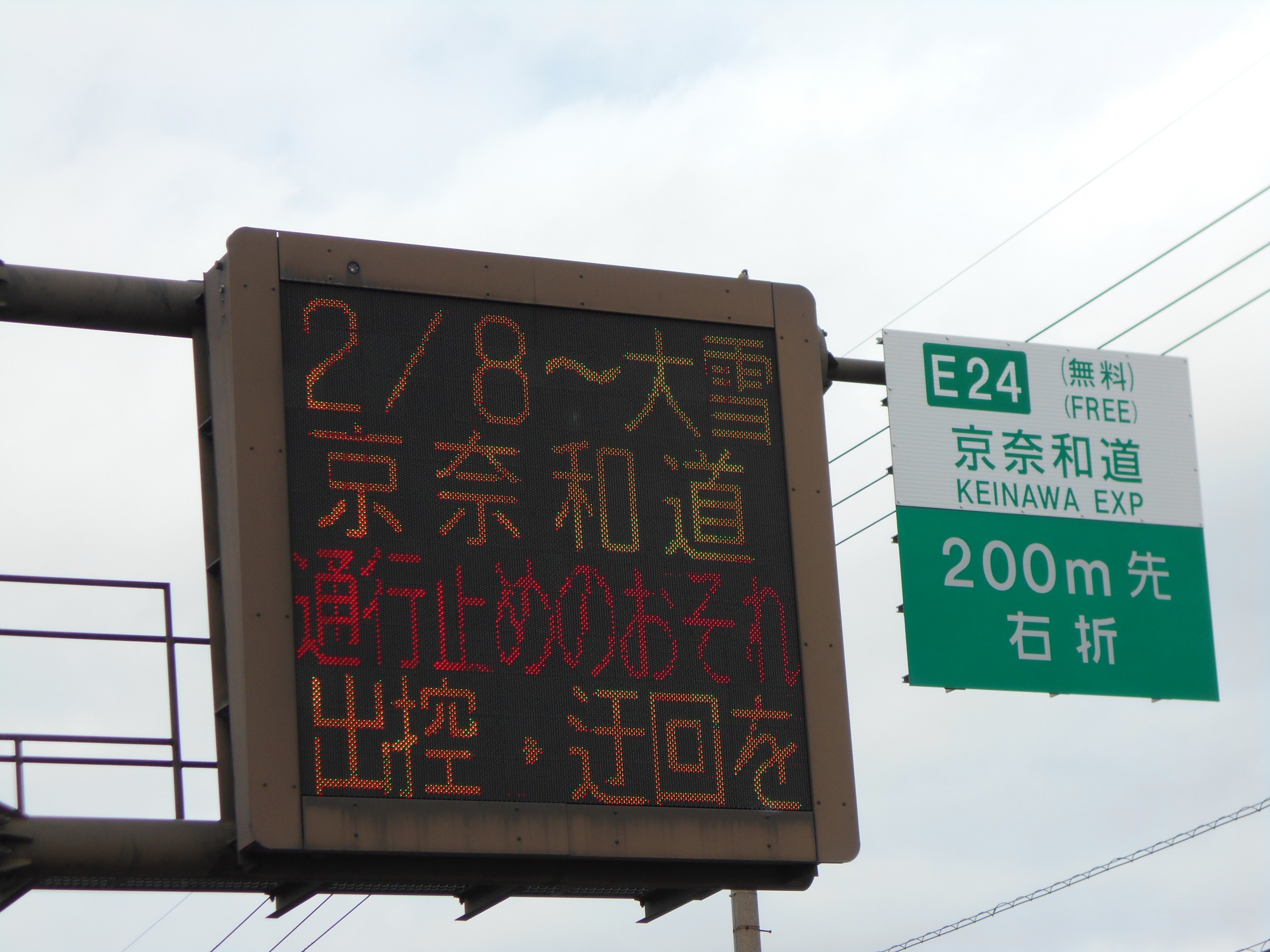 京奈和自動車道の電光掲示盤も警戒表示しています。