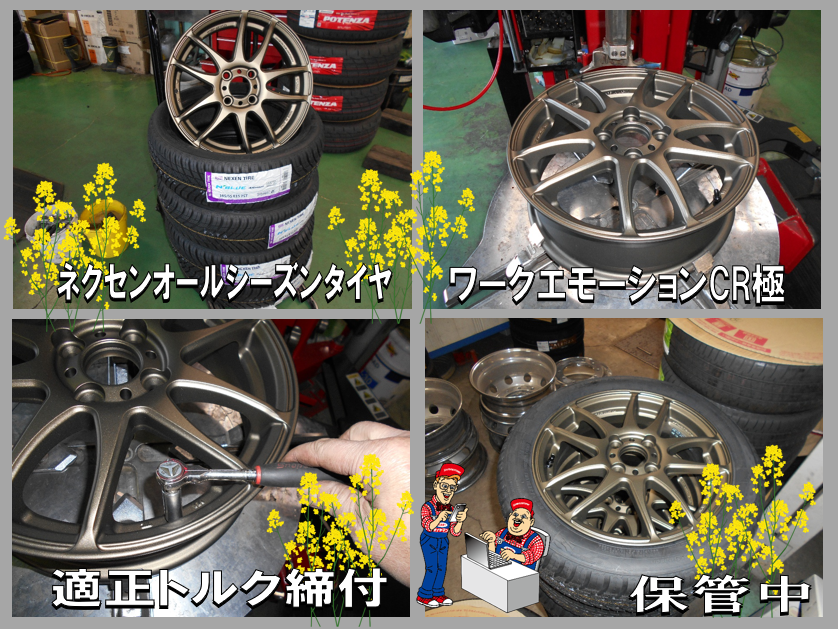 タイヤは、冬の少々の雪でもいけるようにネクセンさんのオールシーズンタイヤでセット。