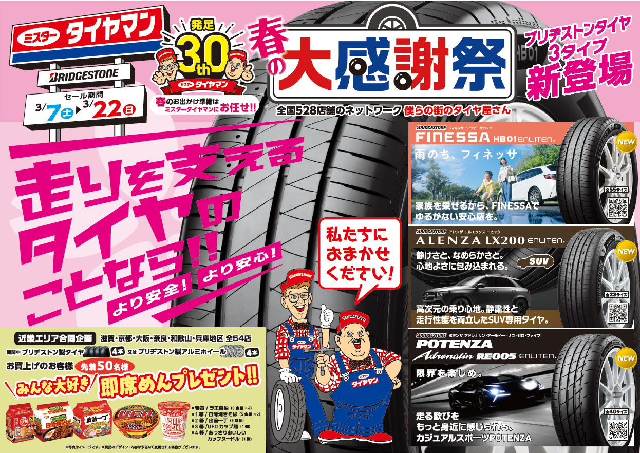 春の大感謝祭も始まりお買い得タイヤも勢ぞろいでお待ちしております