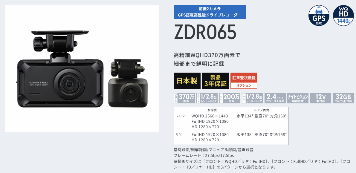 富田林市 トヨタ 日産 ホンダ ミツビシ マツダ スズキ ダイハツ スバル メルセデスベンツ フォルクスワーゲン アウディー コムテック ZDR065 ドラレコ