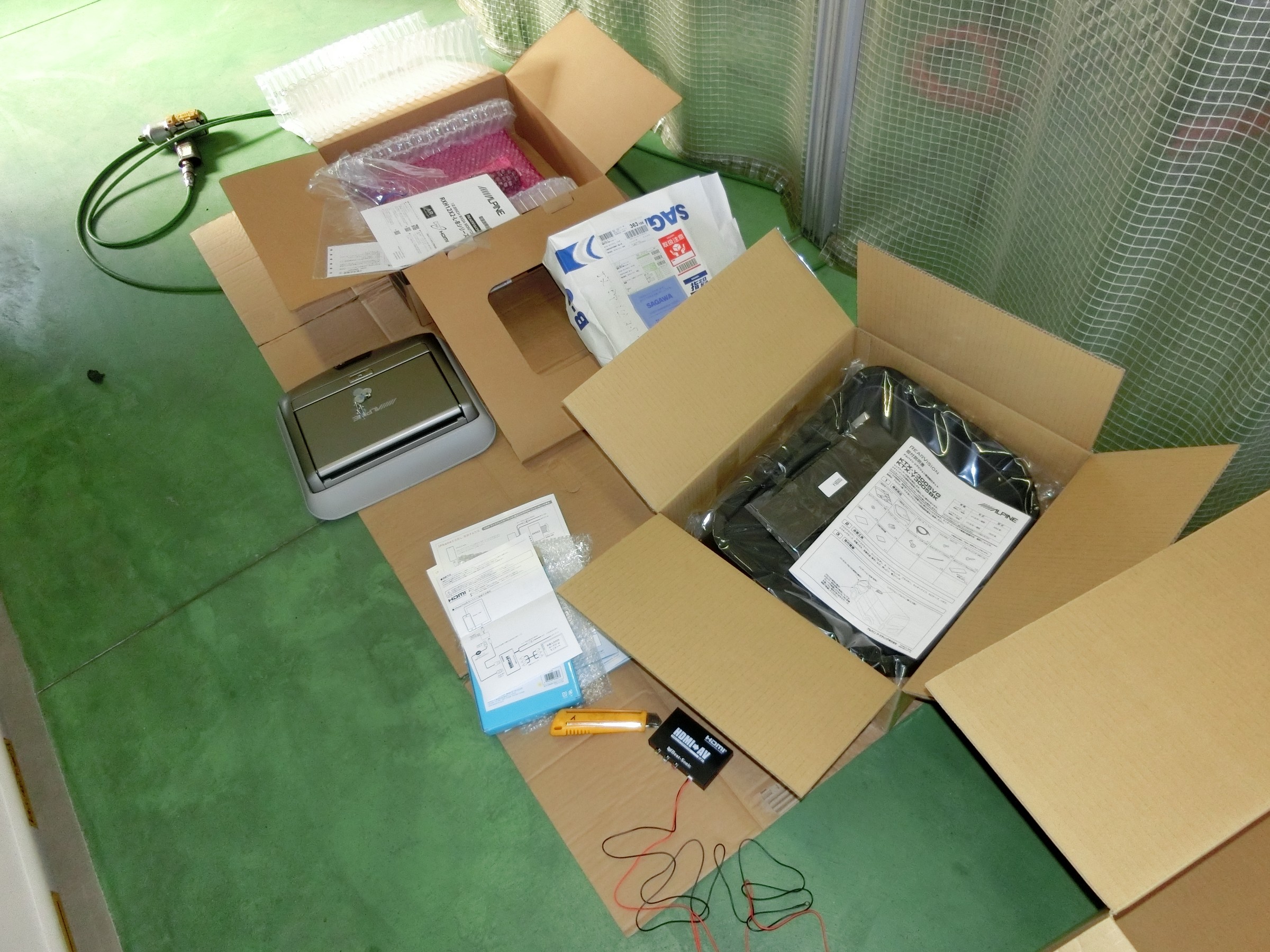 今日はアルパインさん天井取付型リアビジョンを取付中です。