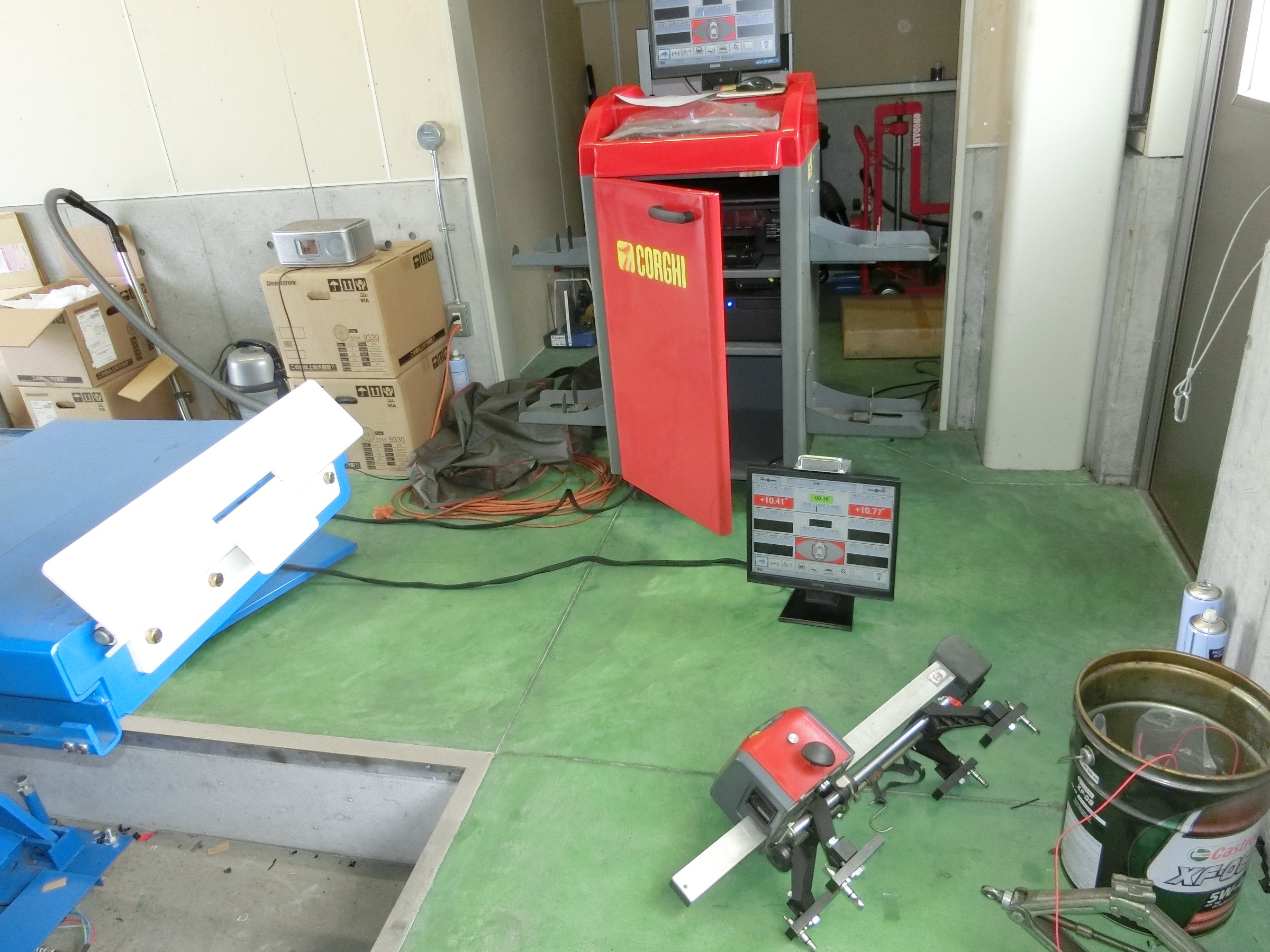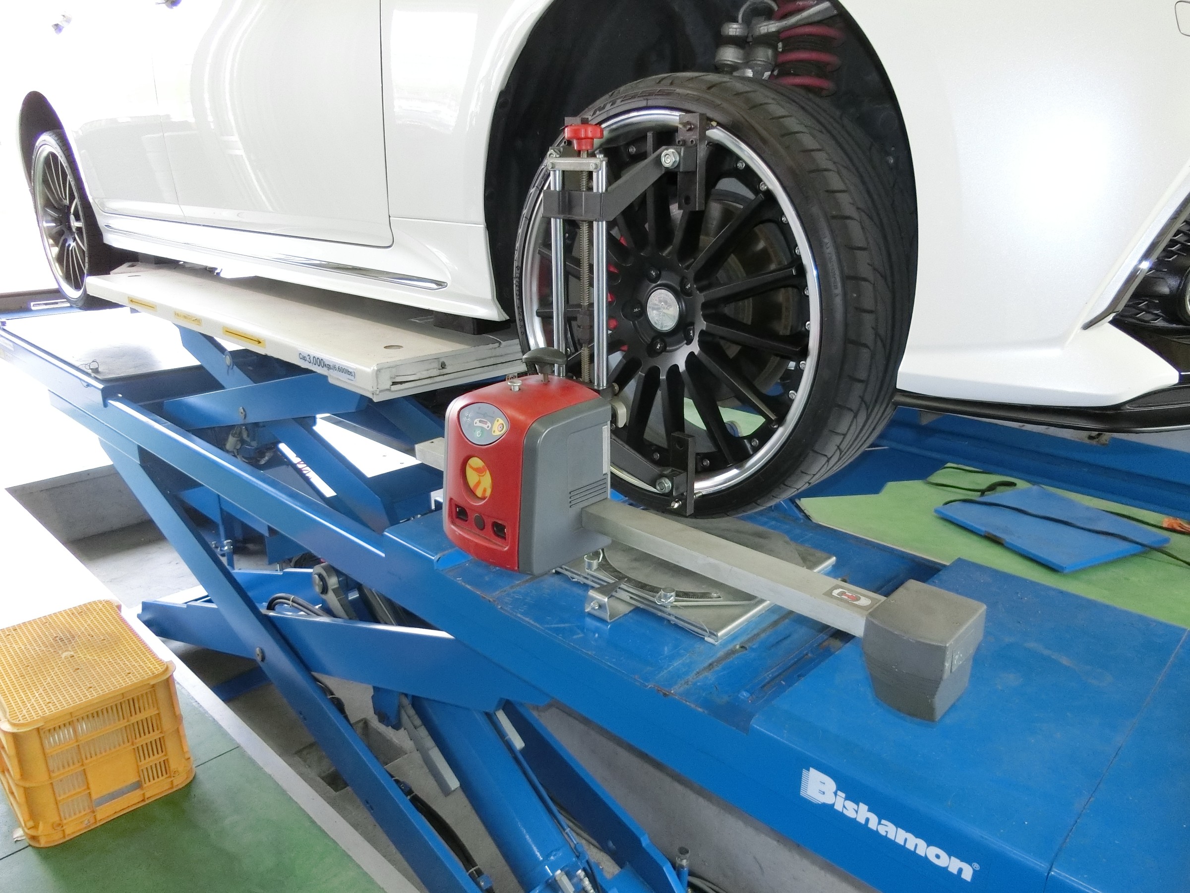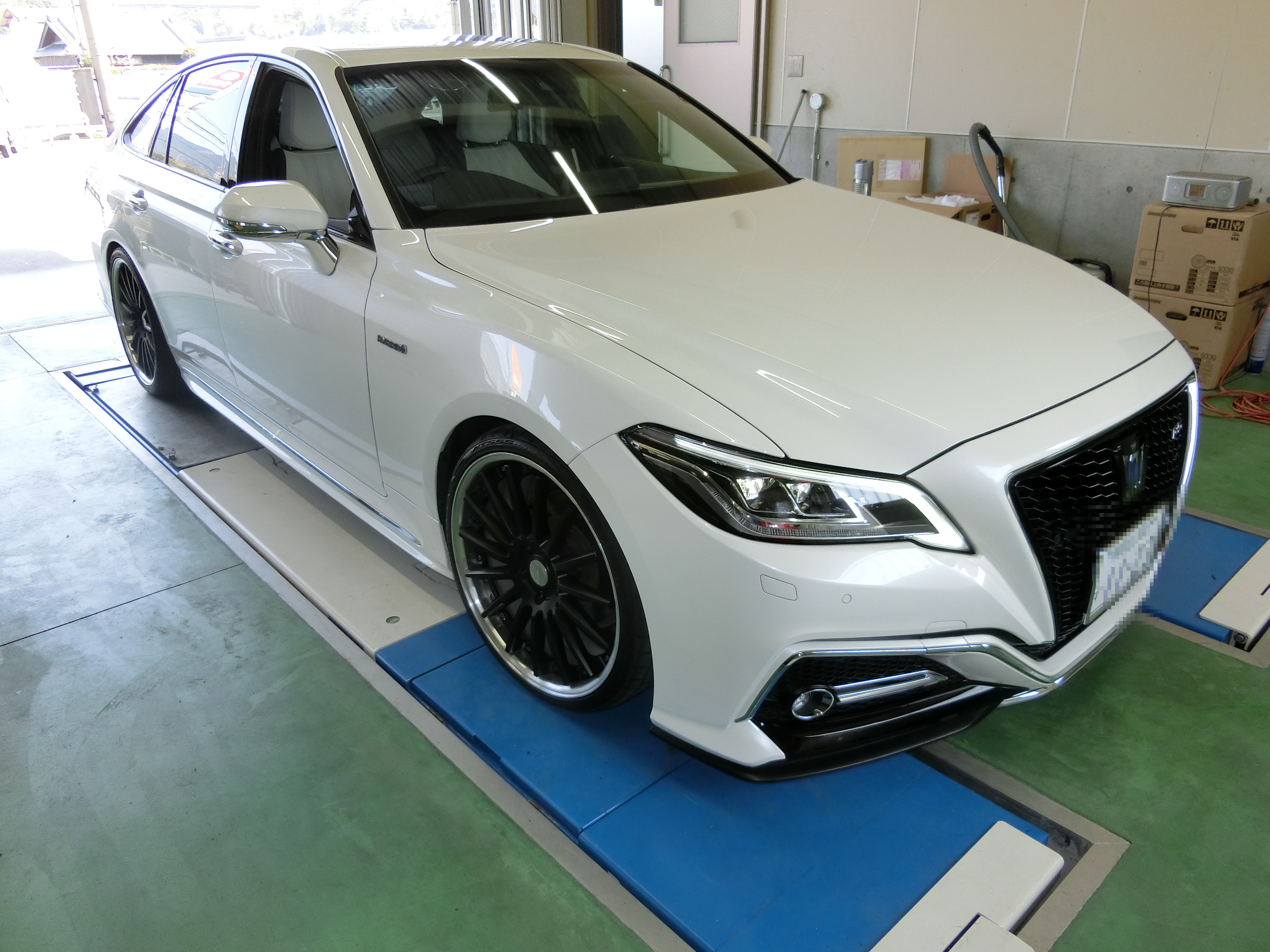今日のお仕事は、クラウンさんのアライメント調整。