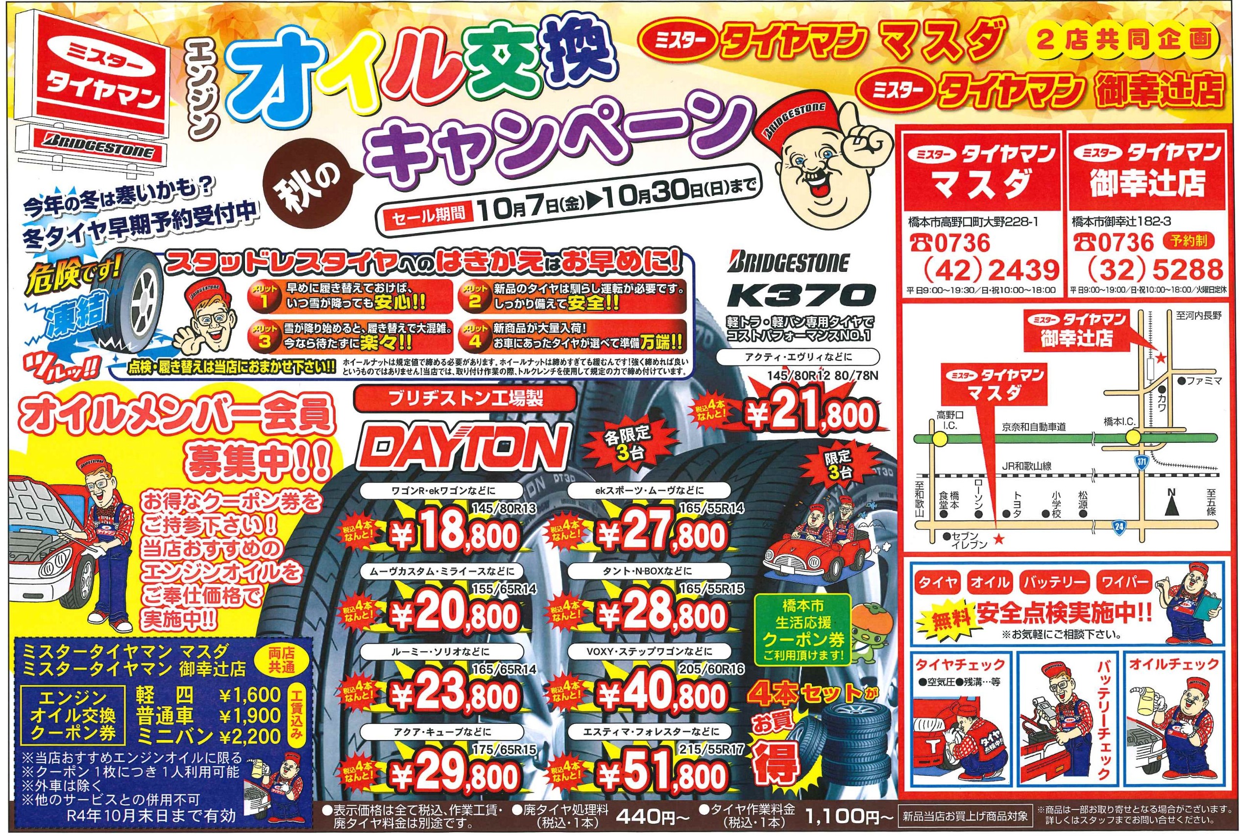 お買い得タイヤ・スタッドレスタイヤ情報・オイル交換キャンペーンとお得情報満載。