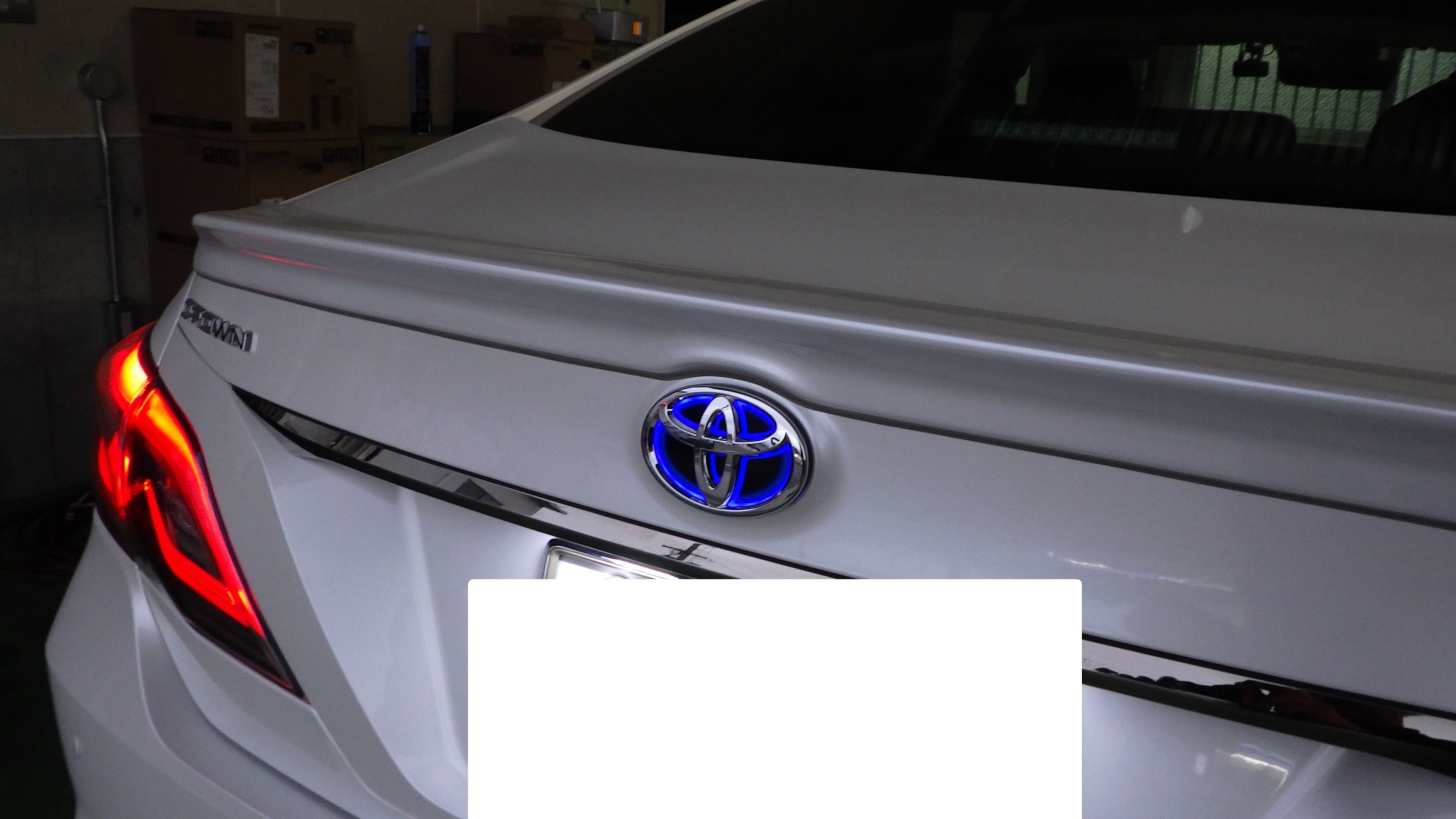 クラウンさんまずは、純正エンブレムをLEDエンブレムに交換。