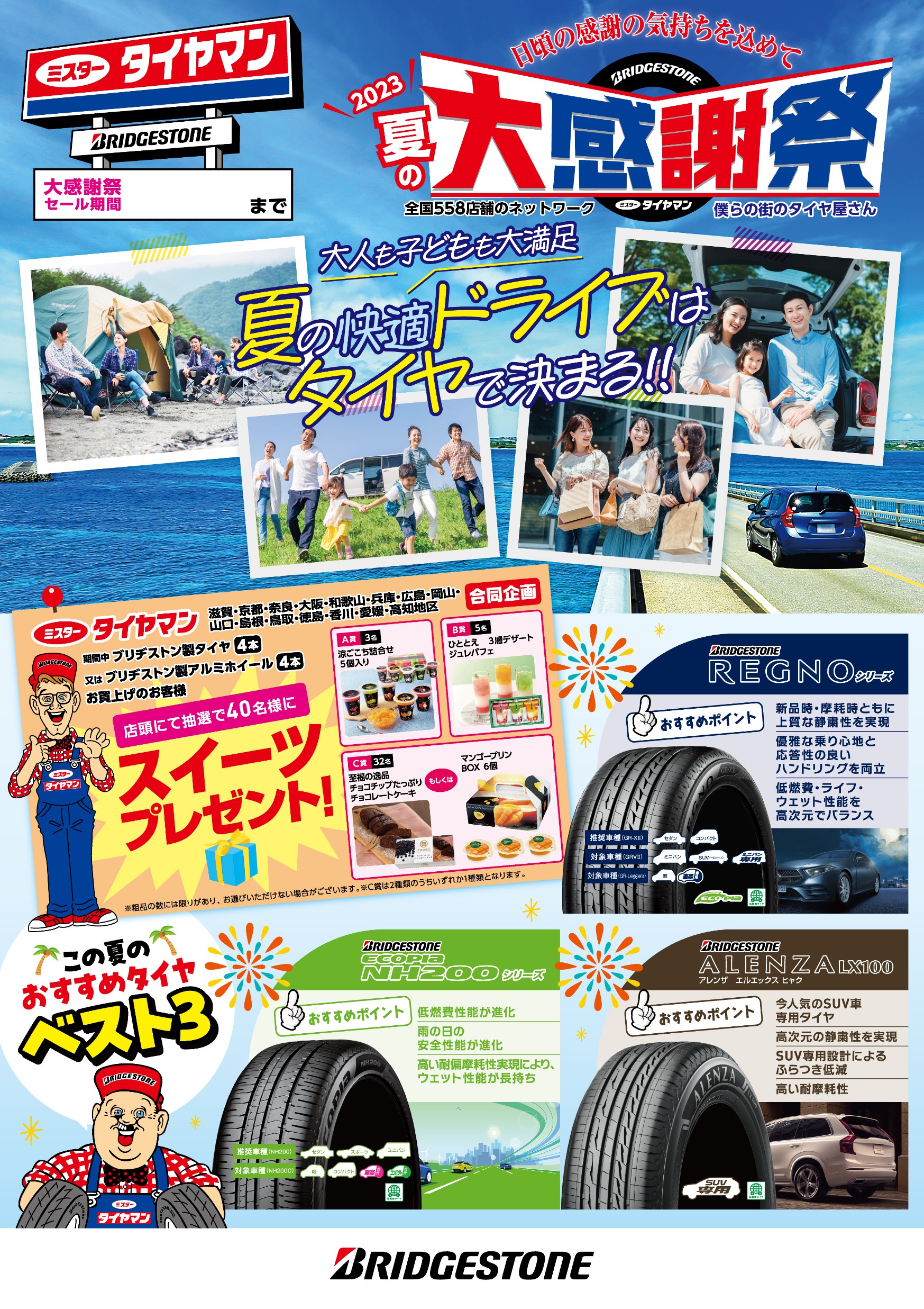 ブリヂストンタイヤ4本お買い上げで厳選スイーツプレゼント。