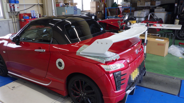ダイハツ コペンさん。リヤスポイラー仮付けです。