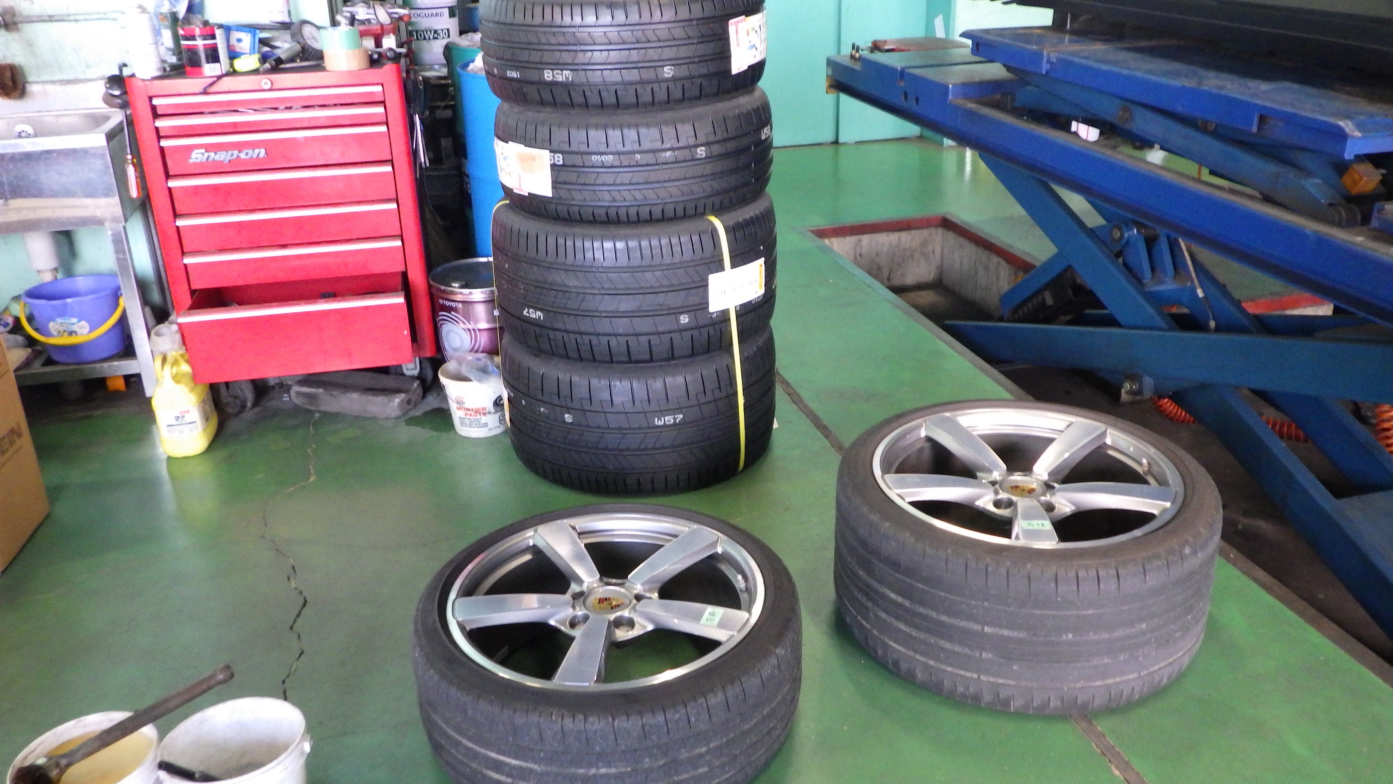 まずは、ポルシェ911さんタイヤ交換。