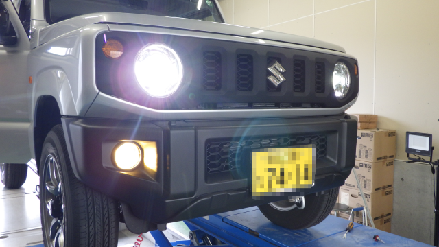 ジムニーさんは、雨の日の為にイエローフォグランプ球に交換。