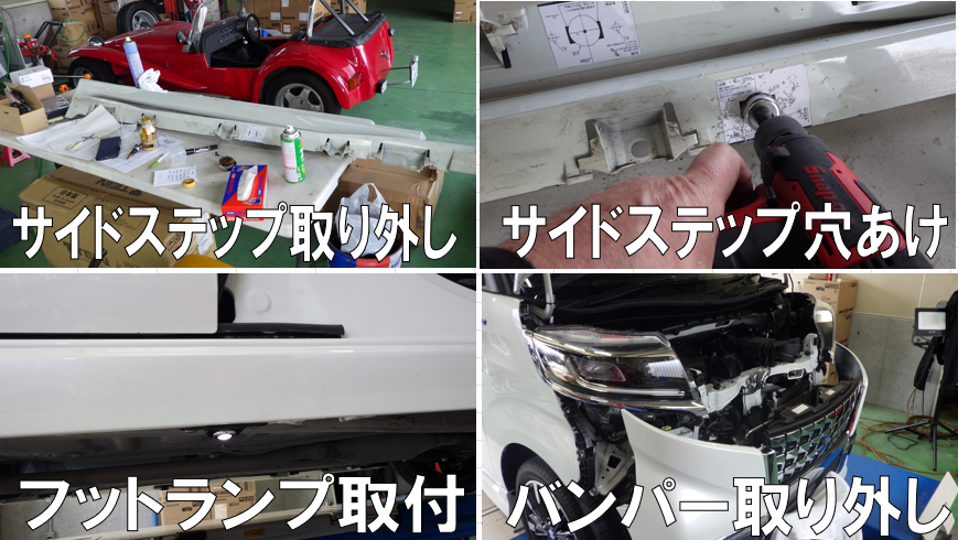 サイドステップ取り外した、穴あけして、配線して、ランプ取付。