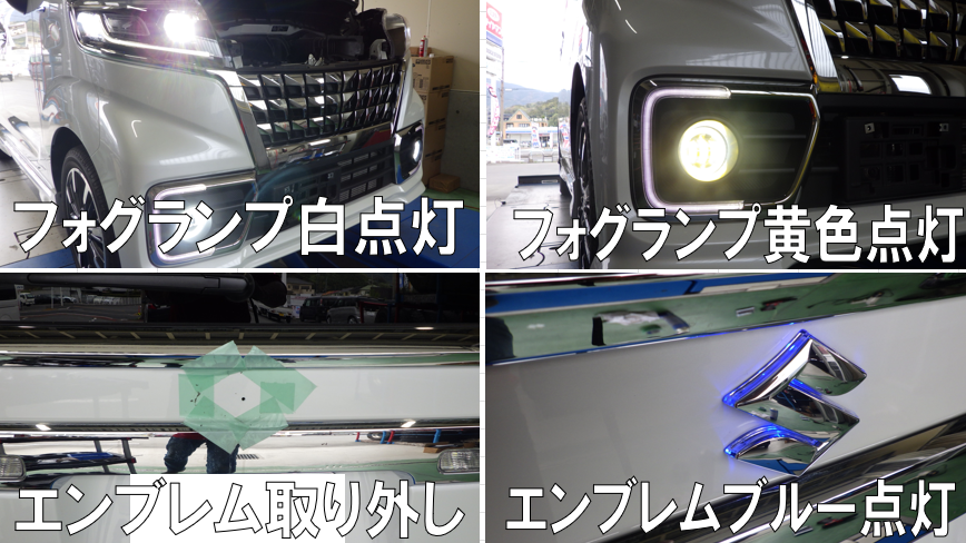 フォグランプイカリング付に交換。白と黄色と点灯します。