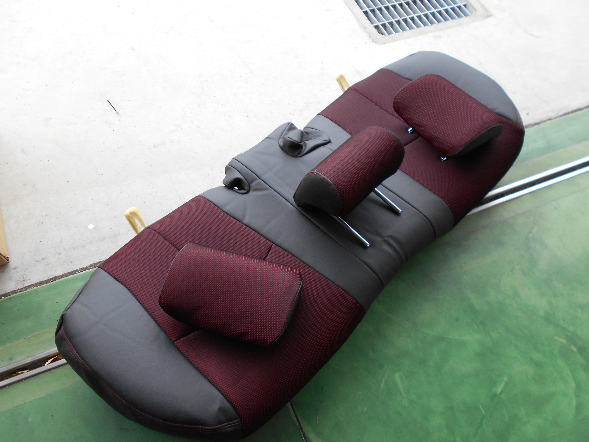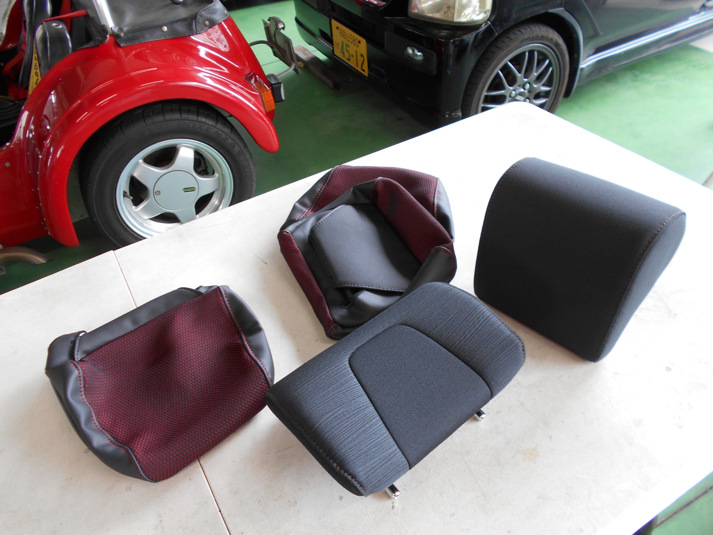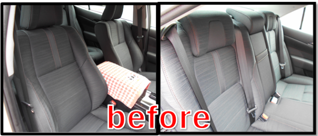 まずは、ヘッドレストにカバーします。意外と破れそうになるので慎重に。