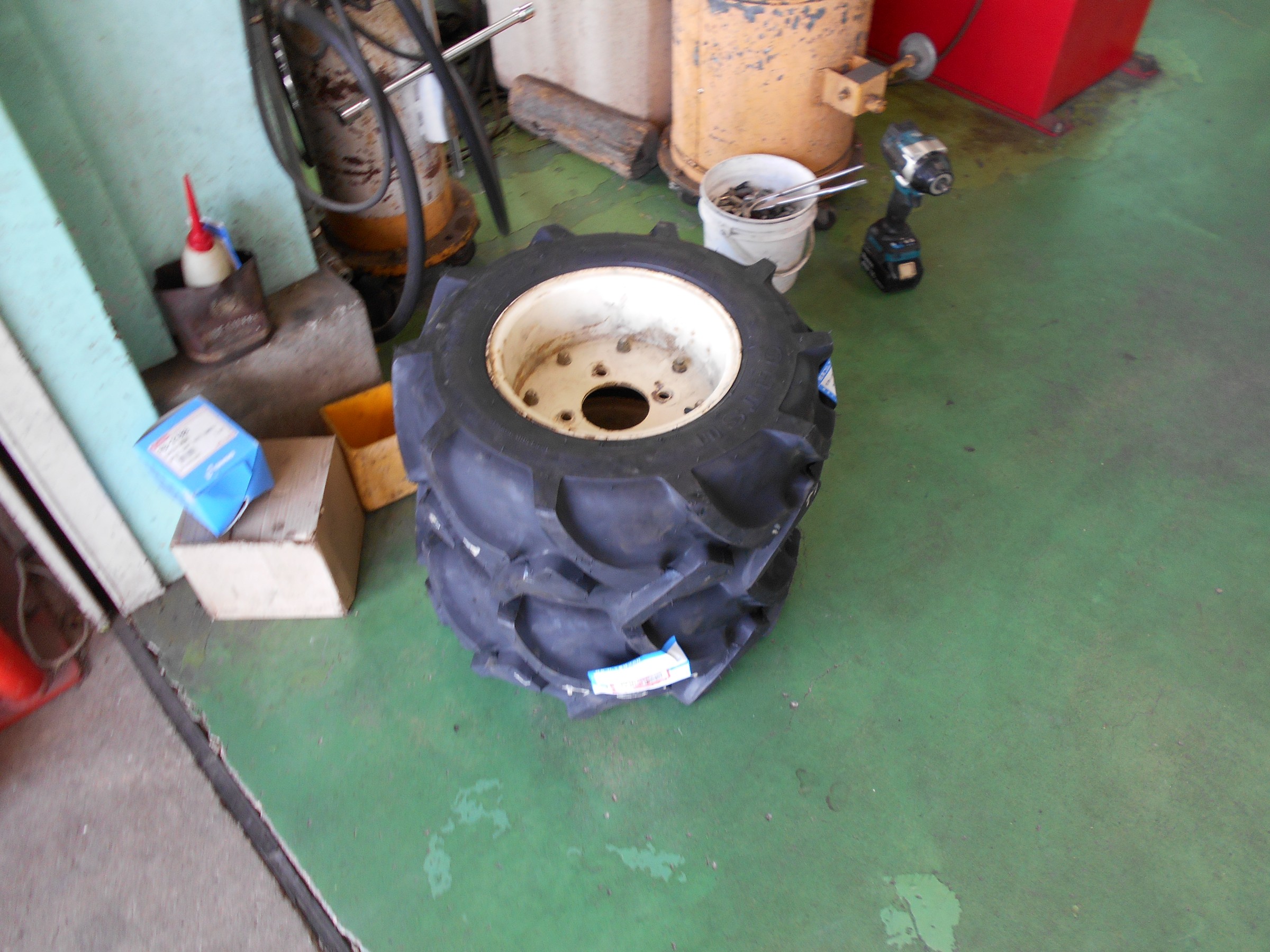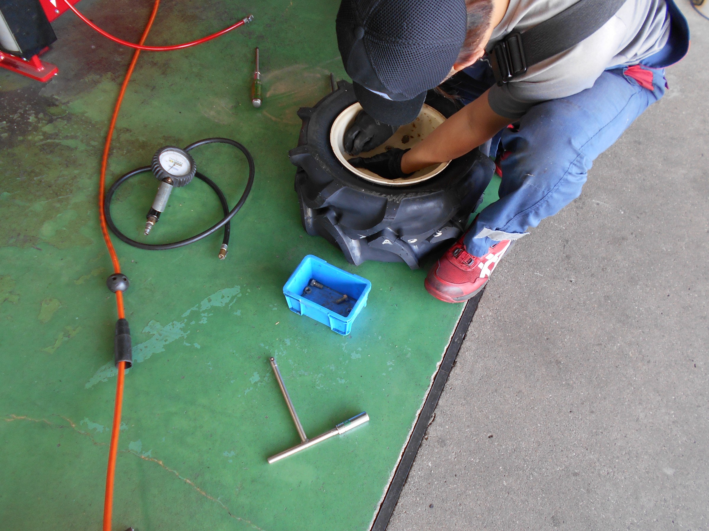 この時期はやっぱりトラクターのタイヤ交換が多発。