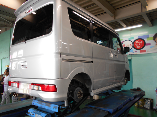 軽バンのタイヤ交換中。