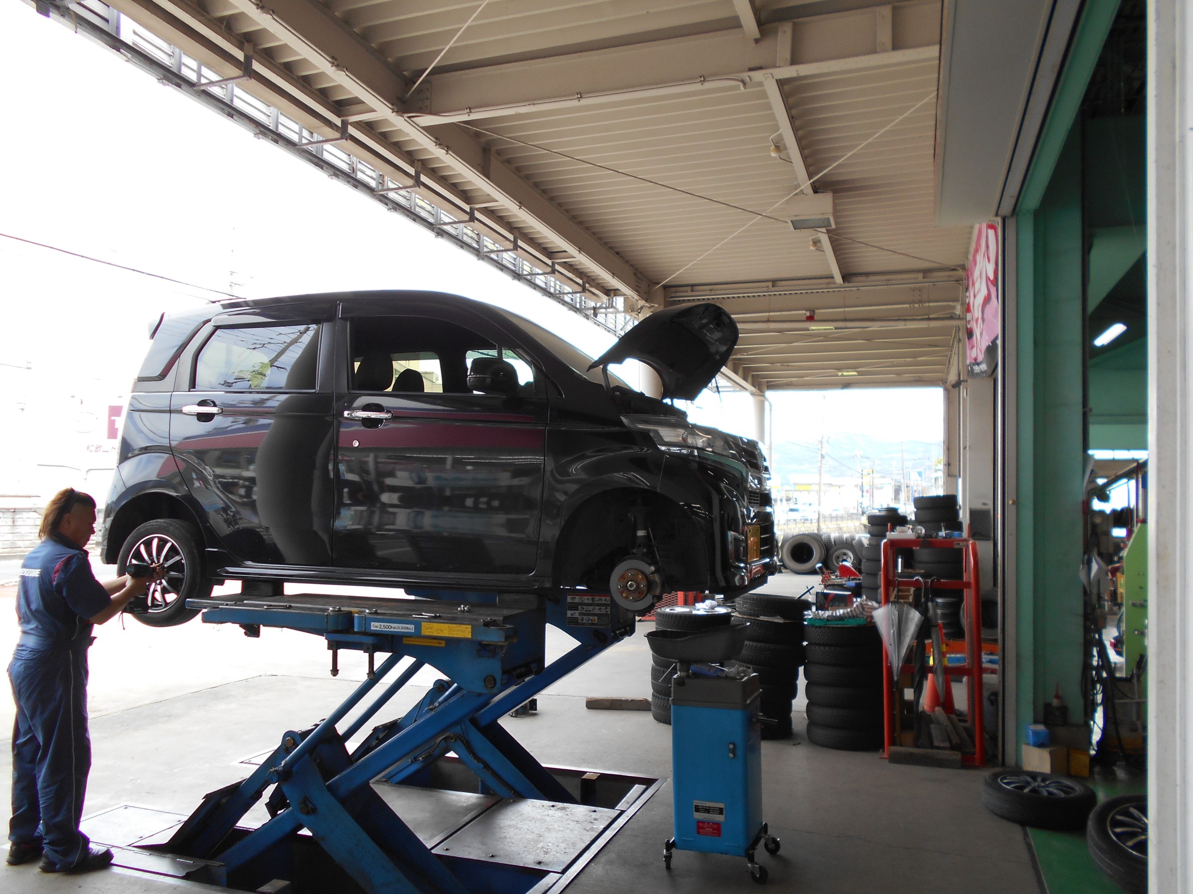 こちらもタイヤ交換とオイル交換同時進行中です。