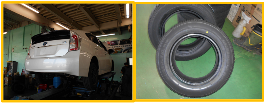 プリウスさん。フロントタイヤだけ擦り減ったので