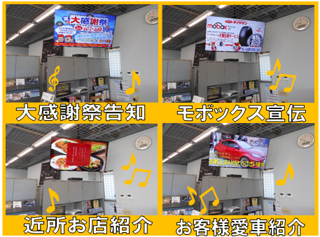 イベント告知・商品情報・近隣店舗宣伝・お客様愛車紹介