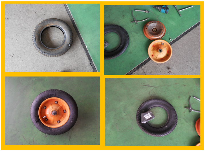 経年劣化した一輪車のタイヤ交換です。