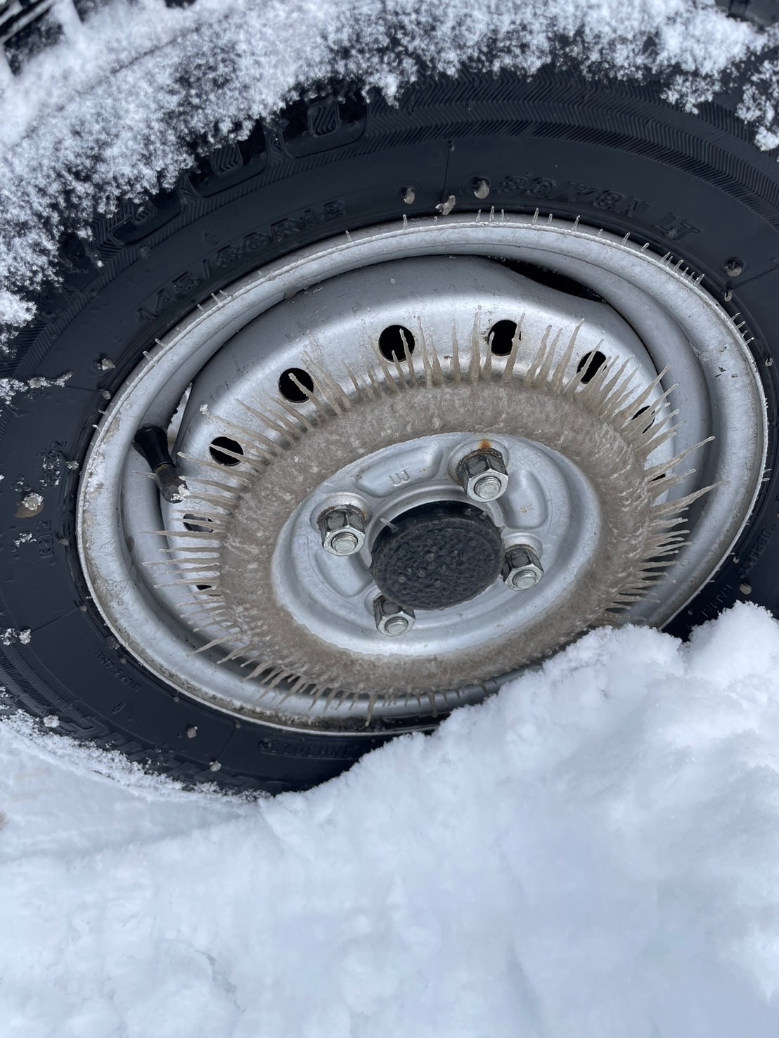 駐車している場所まで行き、パンクがないか。ナットの緩みがないか溝はあるかなど確認させていただきました。実施することによりいち早く異常に気付き運行を止めることをなるべく無くすお手伝いをさせてもらってます。