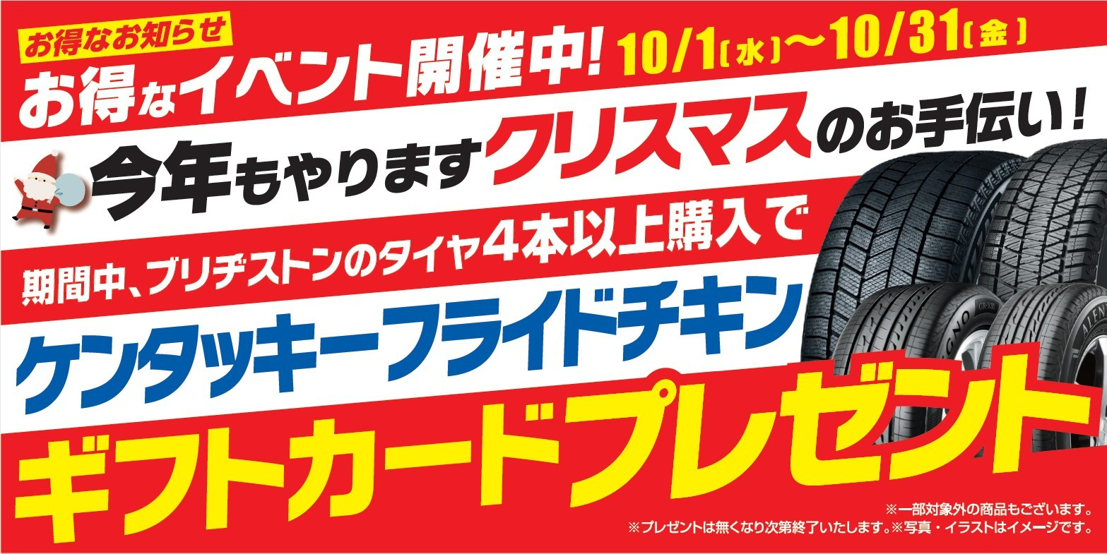 ブリヂストン製タイヤ(夏・冬タイヤどちらでも)4本お買い上げのお客様へ