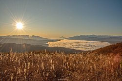休日の早朝、当店からも見える高ボッチ高原へ登ってきました! 天気も良くきもちのいい朝で、諏訪湖に掛かる雲海。遠くに少し顔を出した富士山。