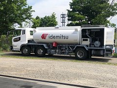 飛行機の燃料を運ぶタンクローリーのタイヤ交換をしに行きました。 特殊車両で、中々見る事のない車両です。