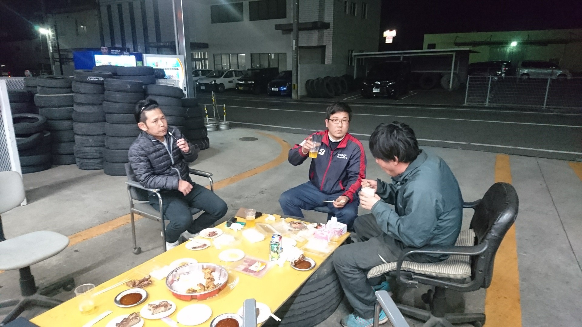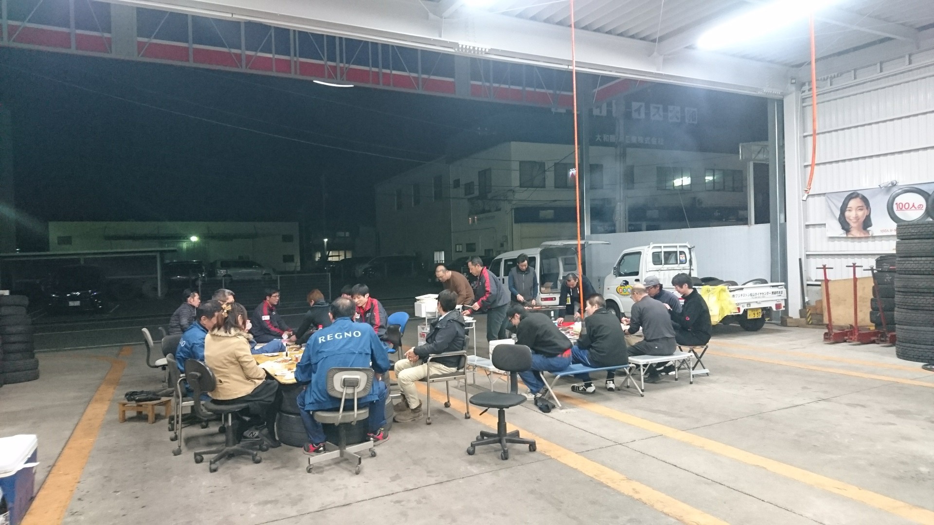 お花見をタイヤセンター、ピットで開催しました。