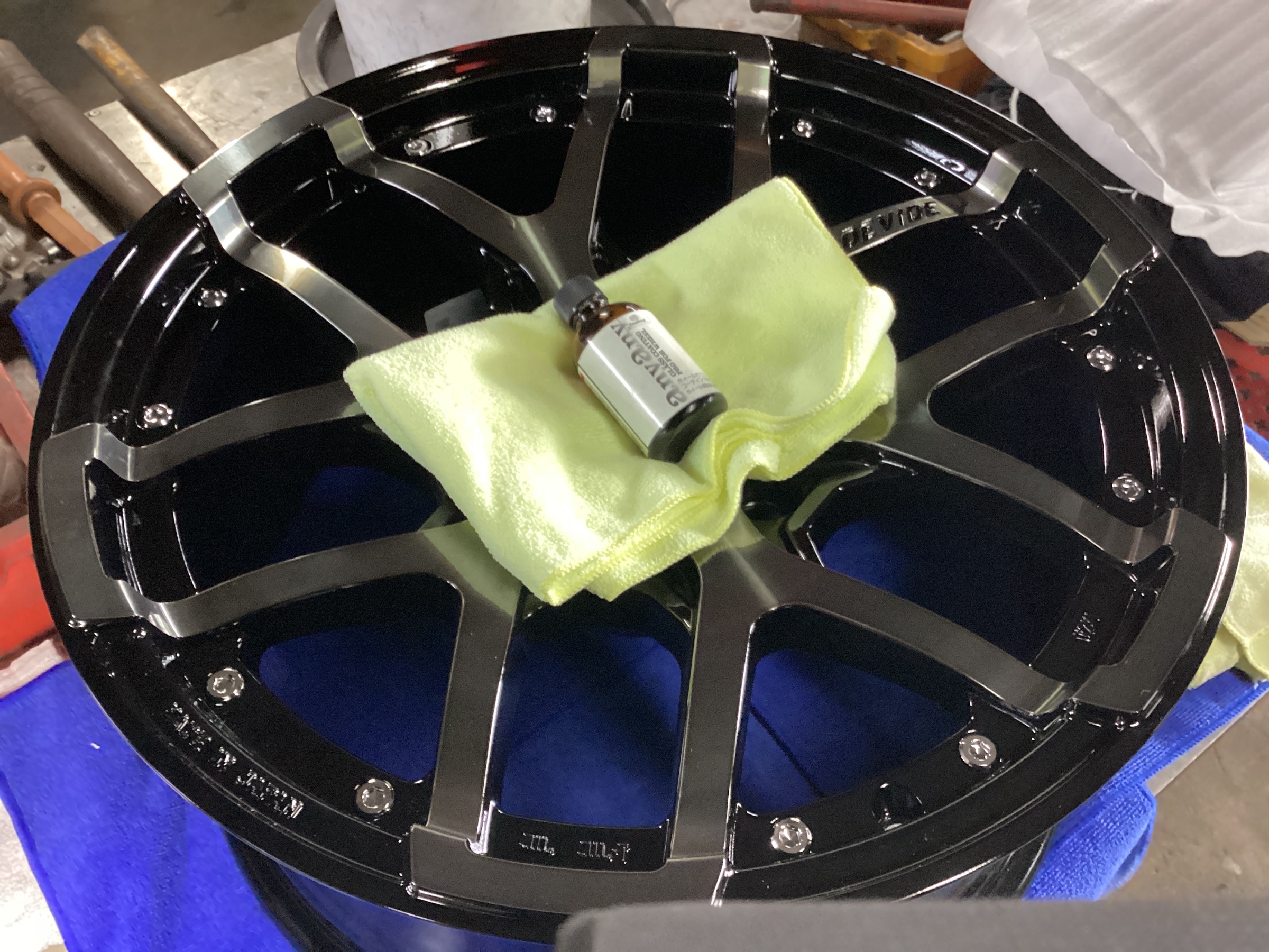 購入していただいたアルミホイールのガラスコーティングをしていきます