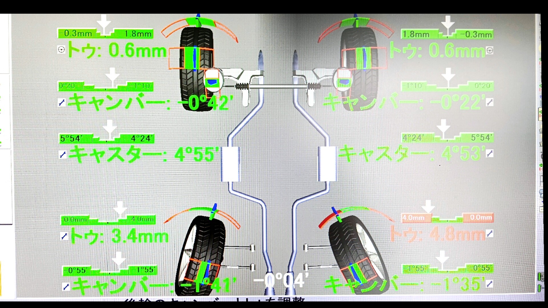 正直、フロントのアライメントが狂っていると思っていたのですが、リアのトゥがかなりインに向いていて
