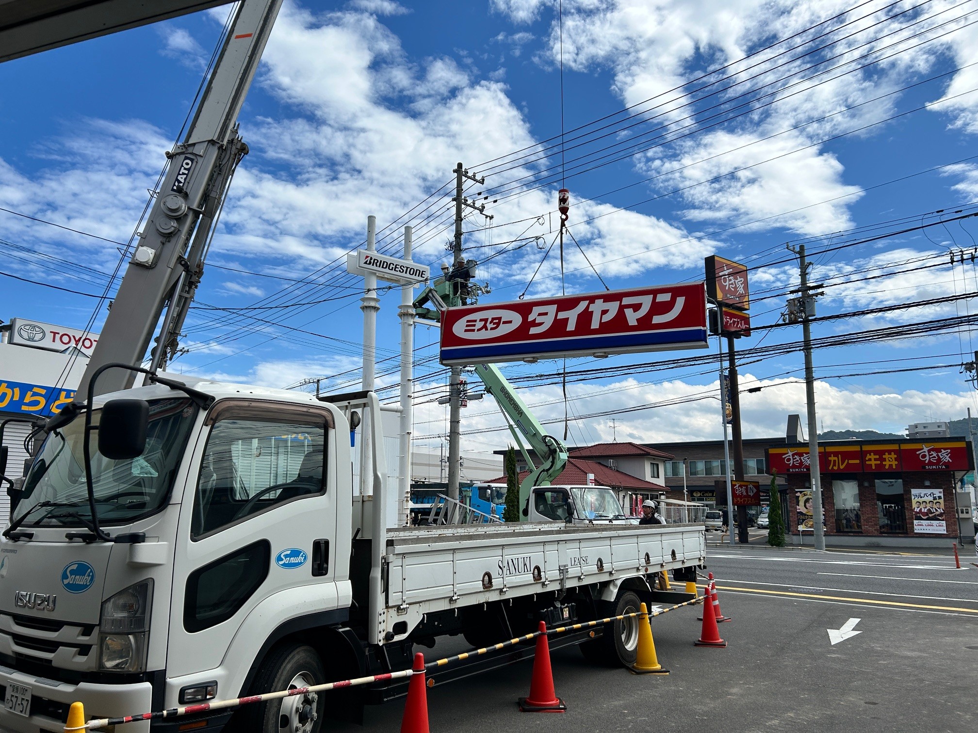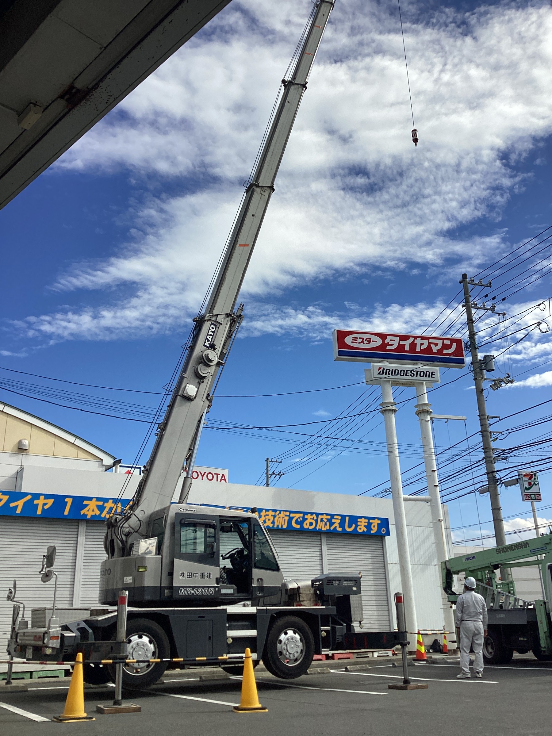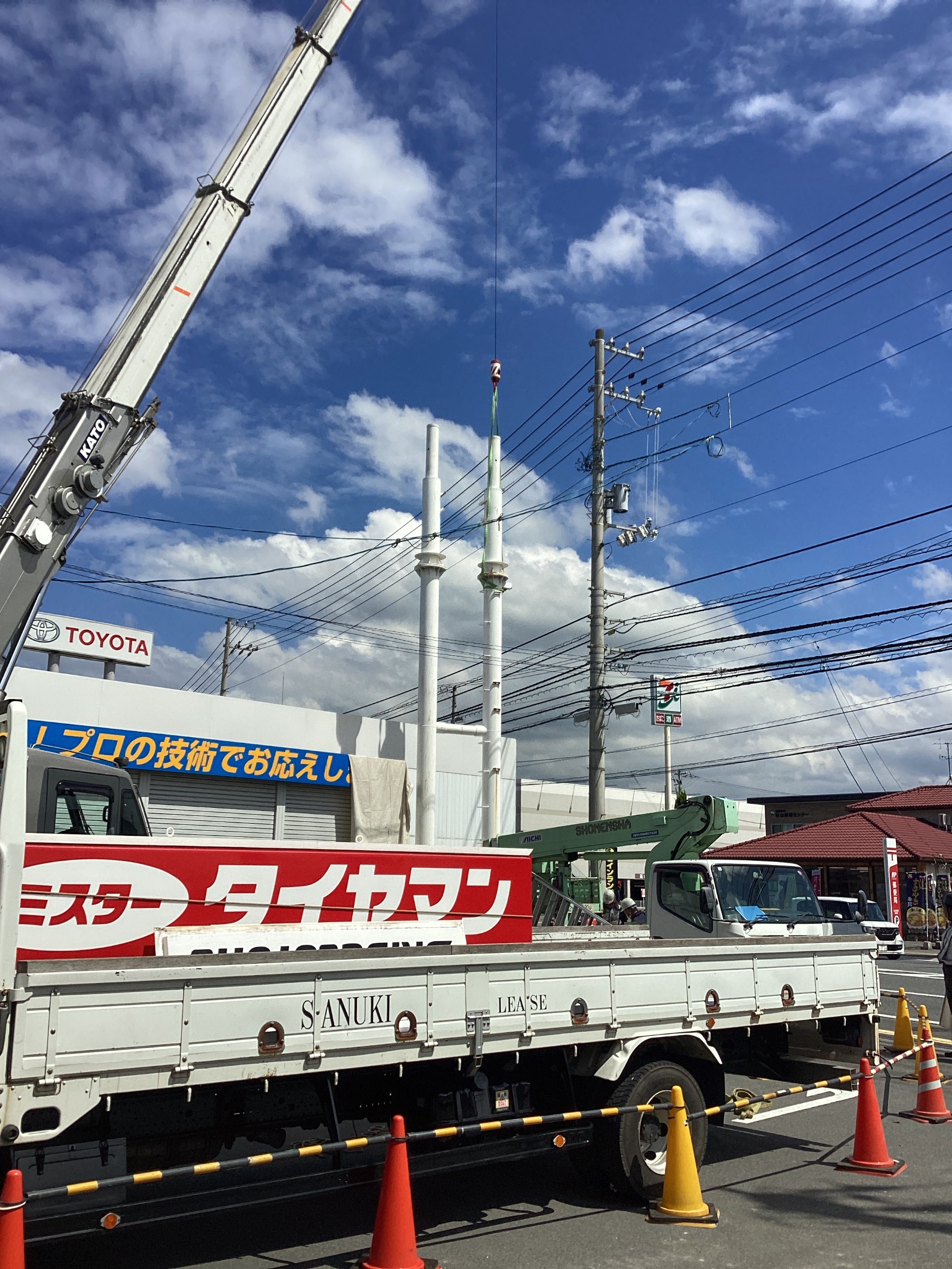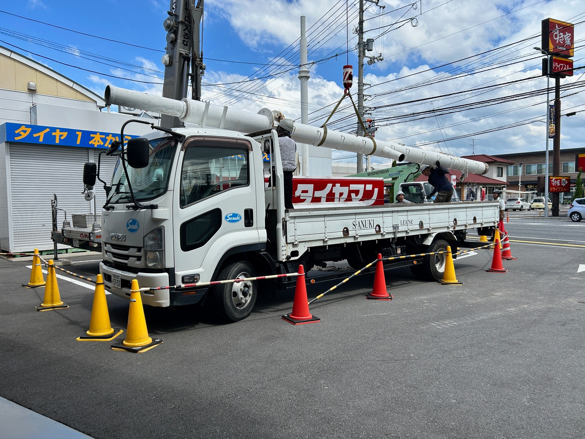 看板の撤去です、看板と言うか柱ですか、柱の老朽化に伴い撤去する事になりました。