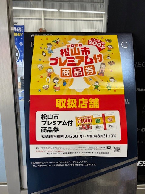 ミスタータイヤマン松山店で使えますよ。