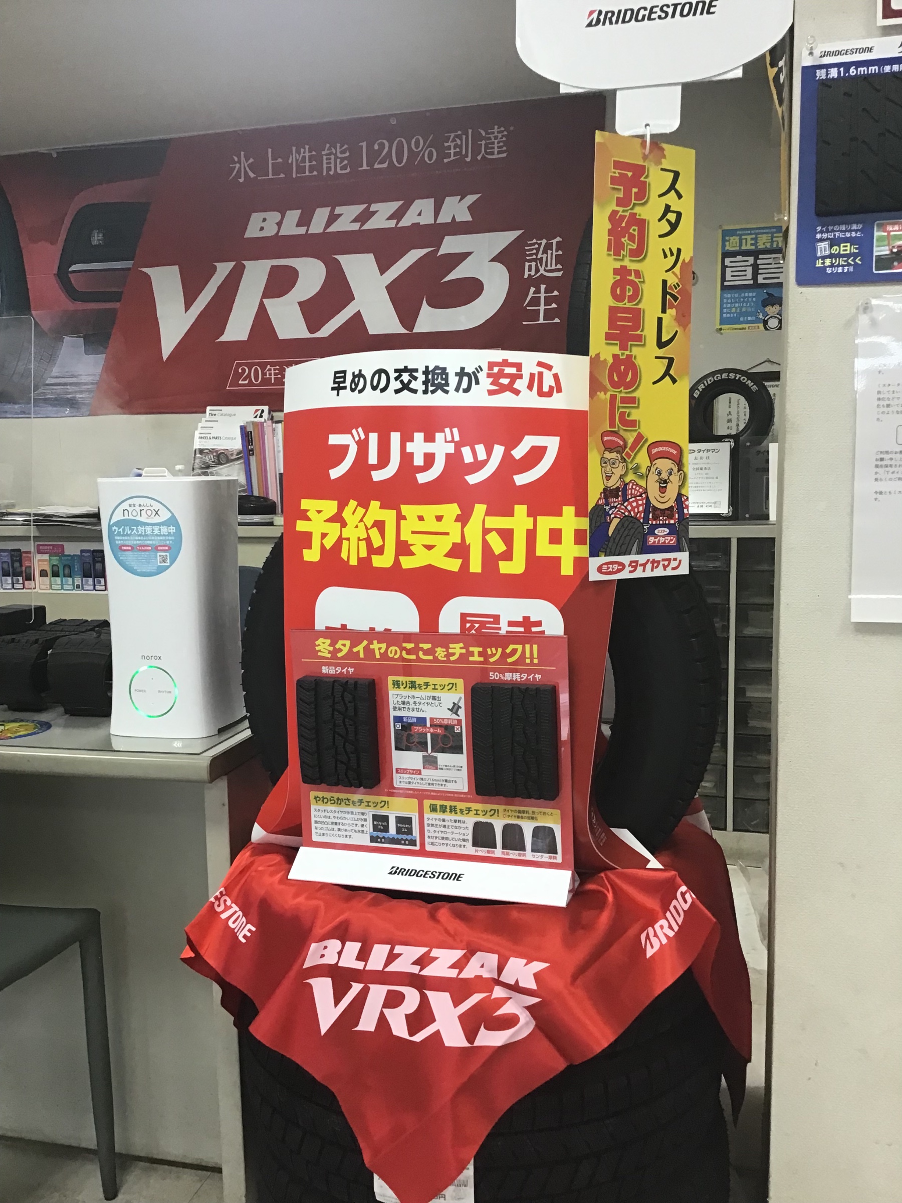 早期予約開始です 2021年9月2日 まだまだ暑い日が続きますようにね。 さて、少し早いかもしれませんがスタッドレスタイヤの早期予約を開始します。 今年は、スタッドレスタイヤに新商品のVRX3が発売されました。 性能は前のモデルのVRX2よりもかなりアップしているようです。