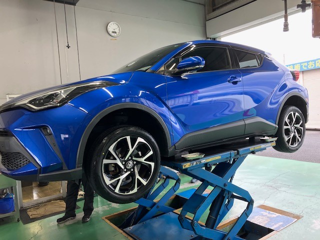 「13時とか14時の丁度の時間からは作業の予約が入っていますので、都合の良い時間の30分頃、例えば14時30分とかで来ていただけると、お待たせせずにお話が出来ます」とお答えし、時間を合わせて来店下されたのがブルーに輝く「トヨタC-HR」でした。
