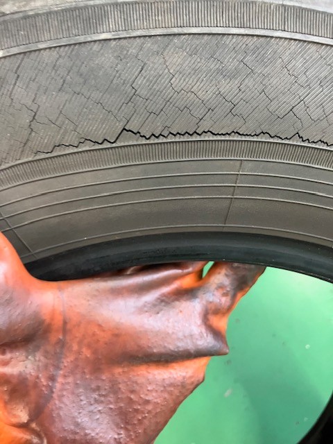 上の画像をご覧いただいた通り、後輪に装着されたヨコハマのタイヤは摩耗と同時にひび割れが進んでいます。