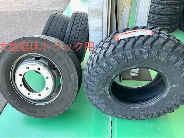 向かって左側は大型低床トラック(12輪)のタイヤ245/70R19,5です。