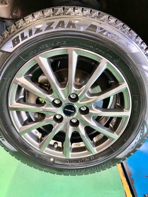 タイヤはもちろんブリザックVRX3。ホイールはトヨタの純正ナットがそのまま使えるバルミナAR12です。