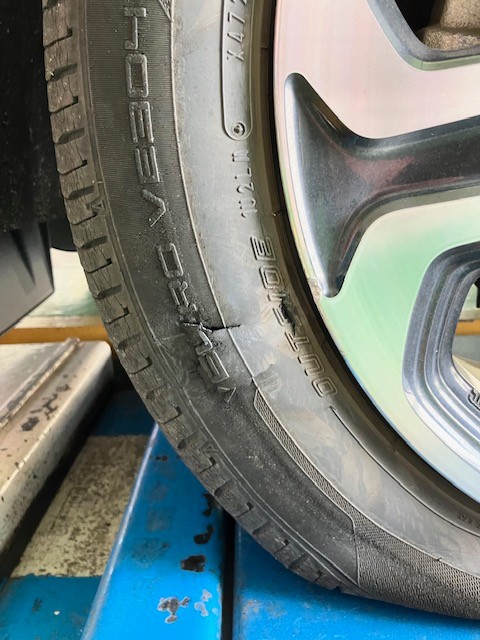 運ばれて来た現車を見ると、何処かに引っ掛けたのかサイドを大きく切ってます。
