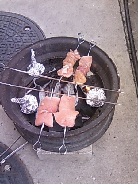 この日を始まりに、予定の少ない日曜のランチは外で炭を熾して豚串・鳥串・イカ串etc野菜も食べなきゃね もやし蒸し・たまねぎ蒸し・ブロッコリ蒸しetc