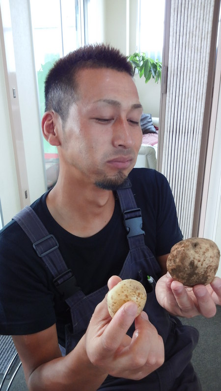 あまり抵抗もなくふかふかの土からゴロンと姿を表す美味しそうなじゃがいも達に快感を覚え、汗だくで(化粧落ちるな・・・まぁイイか~)一畝掘らせていただいた。