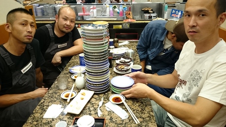 先日は、店長とやぼんと石川君とBOSSと私の5人でがってん寿司へ五人で行きました。
