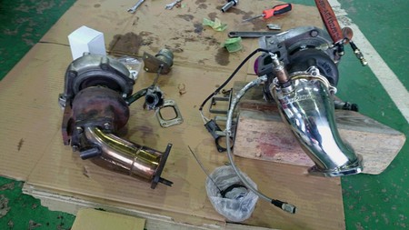 本日、石川君が休日を使って自分の車(180SX)のタービン交換を行いました。