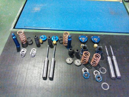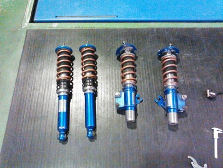 長年使っていた車高調(サスペンション)がしっかり抜けてしまい、乗り心地や車の動きがおかしいとのことで、メーカーの方に修理を出していたものが帰ってきたので