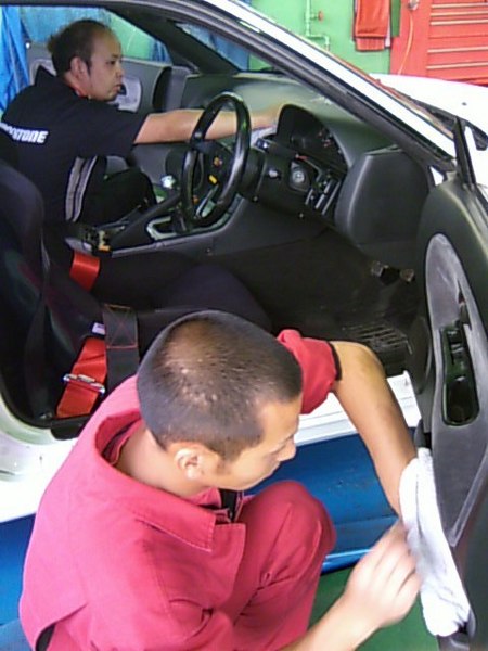 写真はダッシュボード保護&ツヤ出し作業中