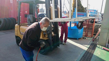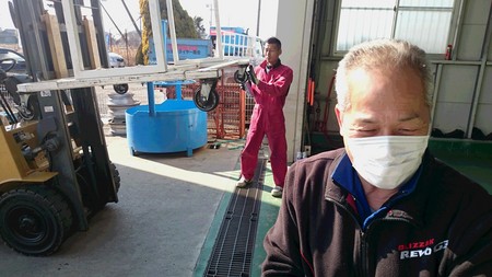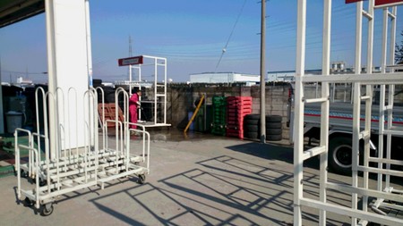 スタッドレスタイヤのシーズンが過ぎ、これから入荷する夏用タイヤを置くために皆でタイヤラックを清掃しました。
