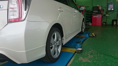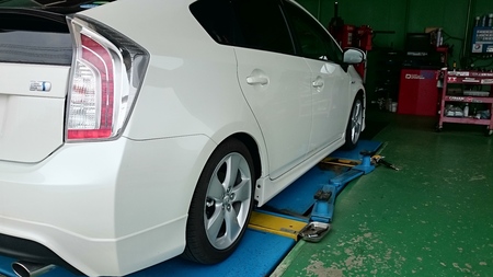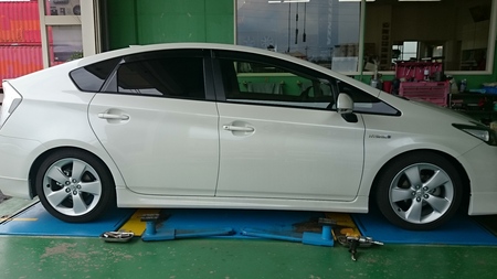 本日、プリウスの車高調取り付けと車高調整を行いました。