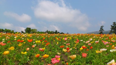 初日はポピーが見頃の「くじゅう花公園」でたくさん写真を撮り、
