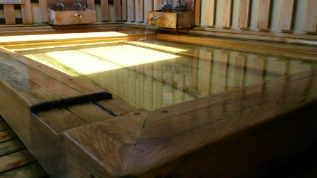 加温かけ流しの大きな浴槽と、源泉かけ流しの小さな浴槽があり、