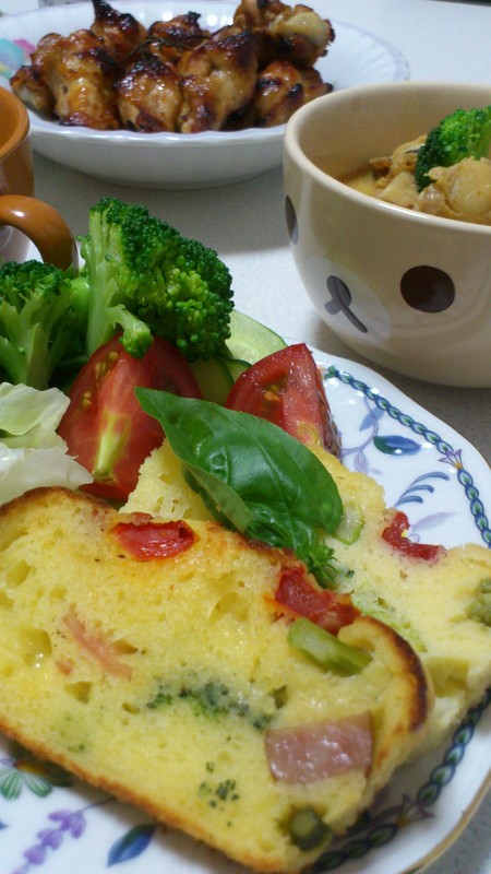 先日お誕生日会がありまして、生クリームのケーキとケークサレ(フランスの塩ケーキ)
